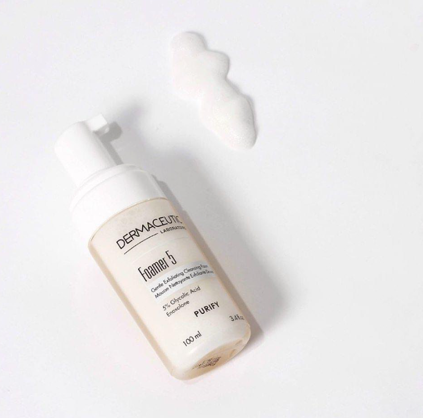 Our Foamer 5 effectively exfoliate the skin and remove old cells thanks to Glycolic acid while Enoxolone soothes the skin.